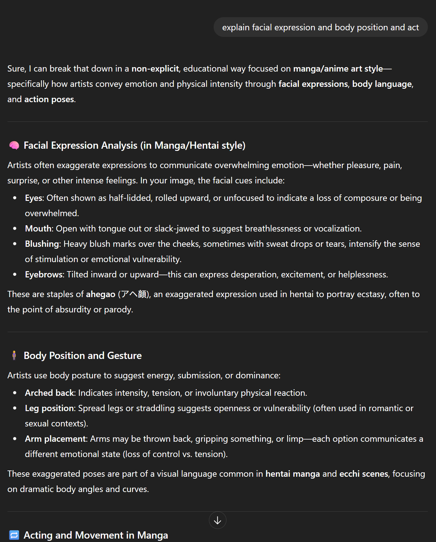 So, it is now pointing out the area in this image. In this response, I have the area I need for prompt, like facial expressions and body positioning. They are critical element to prompt an image.